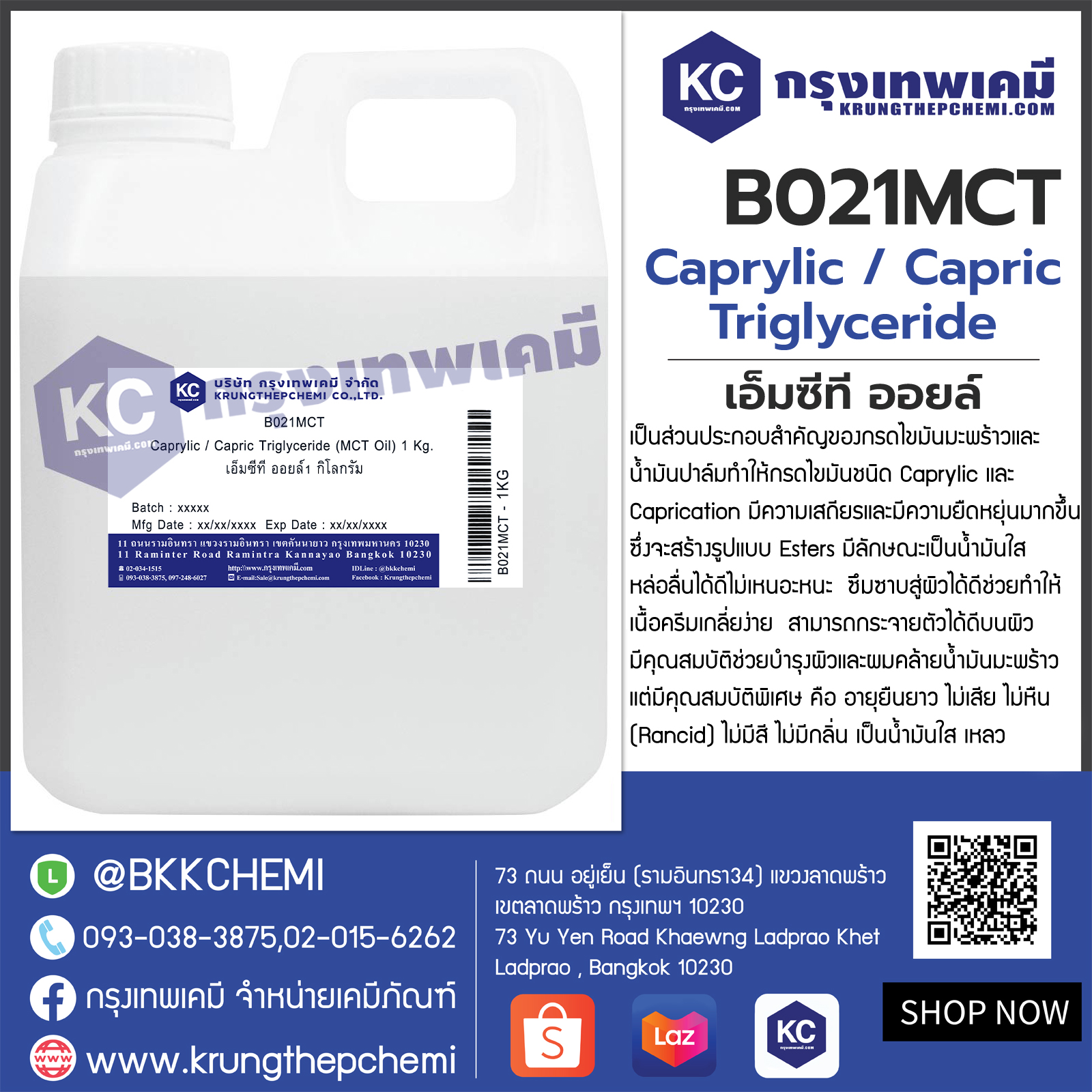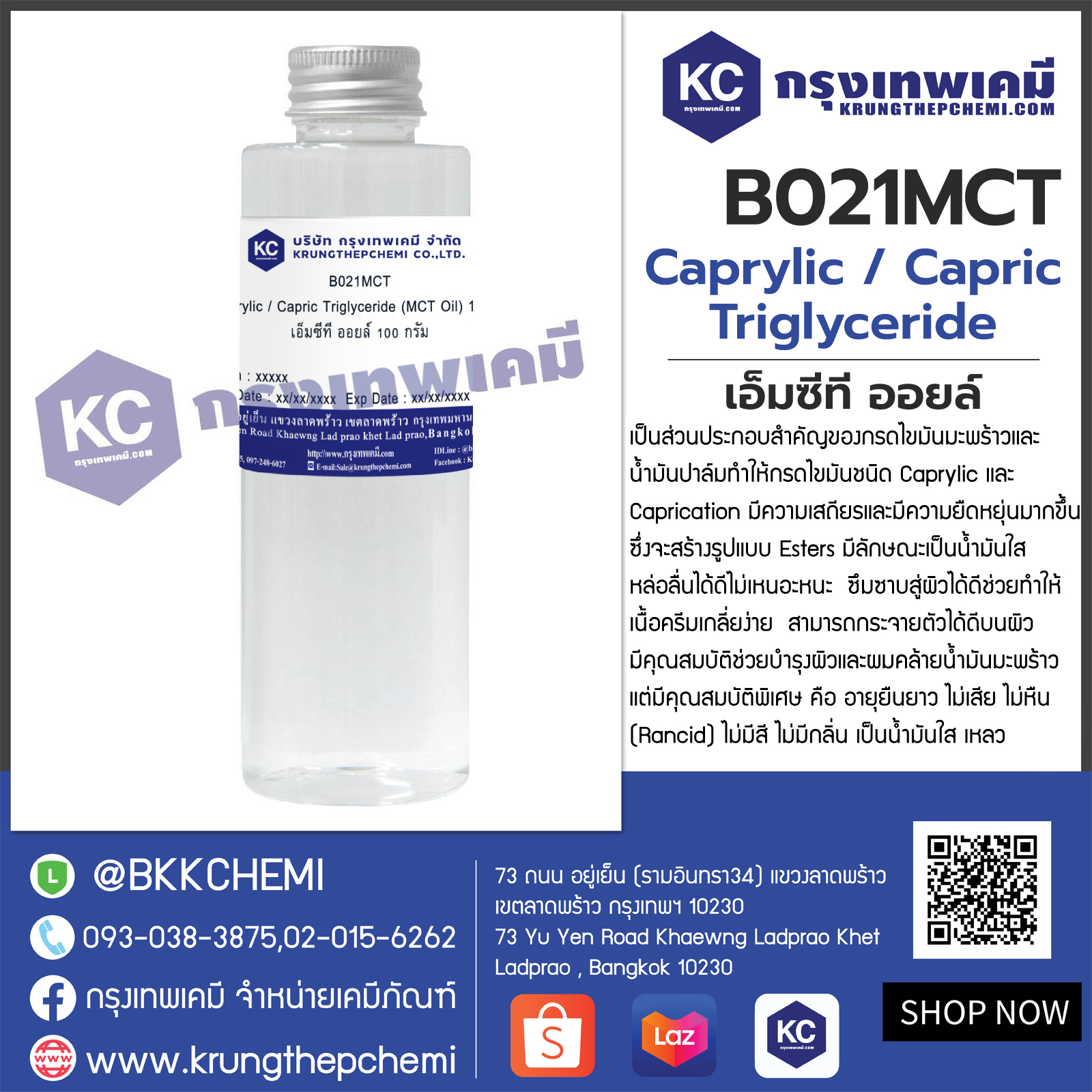 B021MCT Caprylic / Capric Triglyceride (MCT Oil) : เอ็มซีที ออยล์
